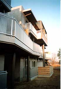 ベランダの仕切りにも木を使い、温もりのある空間に。